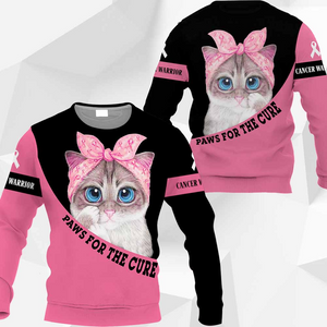 Awesome Hoodie 3D All Over Print Cat Cancer Warrior Paws For The Cure - Hoodie, T-Shirt, Zip Hoodies, Sweatshirt ND709