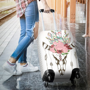 Awesome Hoodied COW SKULL, FEATHERS, ARROWS AND FLOWERS Luggage Cover For Everyone KHCSFAAF