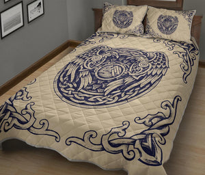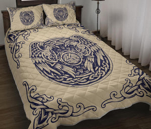 Awesome Hoodied Viking Quilt Bed Set, Valknut Huggin And Muninn - VNBD0005