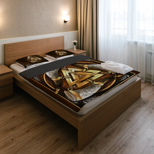 Awesome Hoodied 3D all over print Viking Bedding Set, Odin's Raven Skull Valknut Helm Bedding Sets NQBS0017