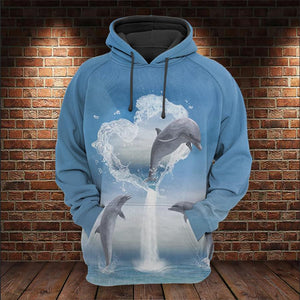 3D All Over Heart Of Dolphins Hoodies for Men and Women, T-Shirt, Zip Hoodies, Sweatshirt DTK001